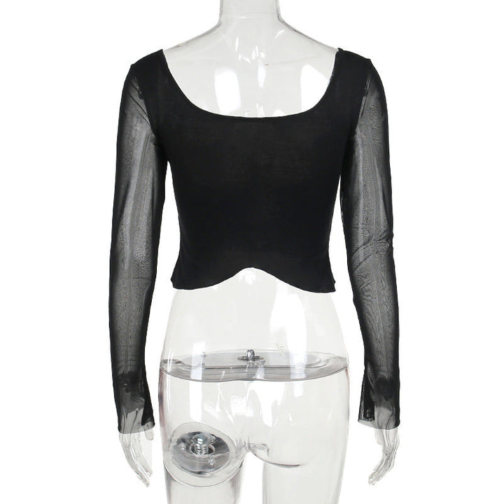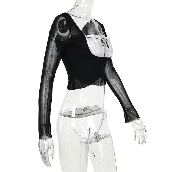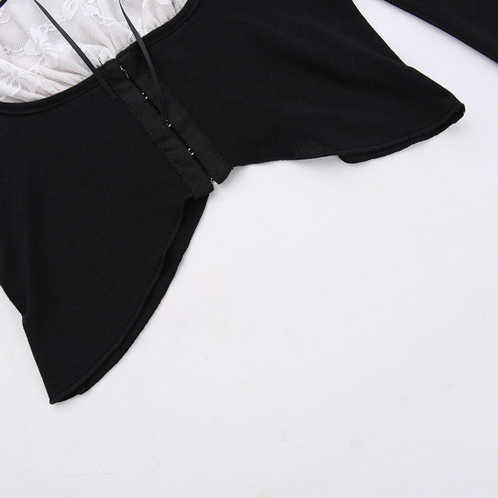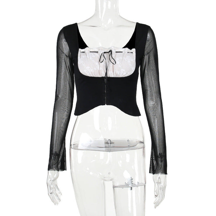 Long sleeve lace ruched self tie crop top
