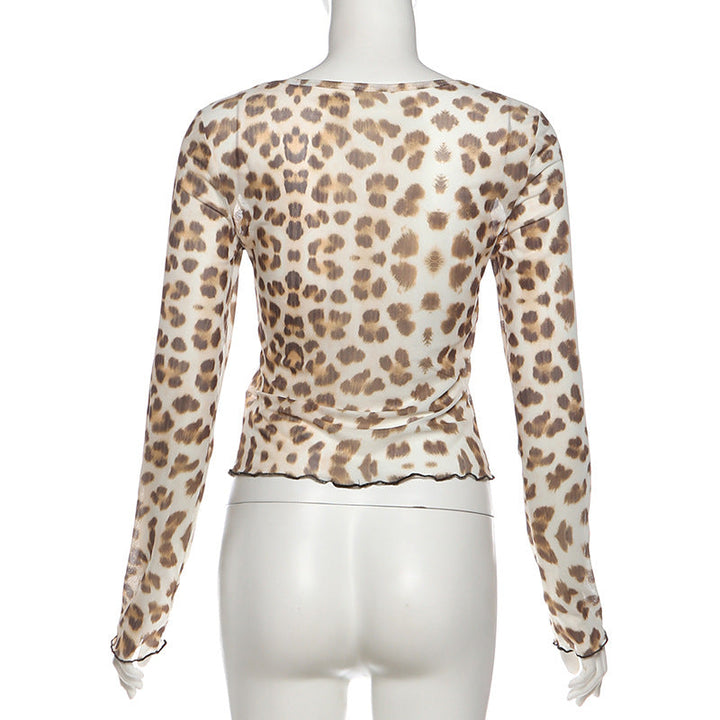 Long sleeve leopard print lace hem top