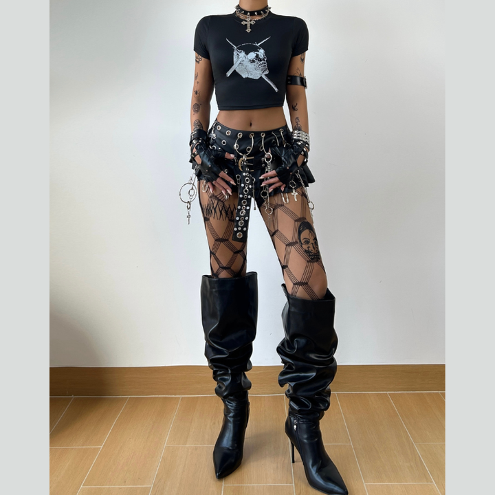 Pierced Skull Crop Top Baby Tee