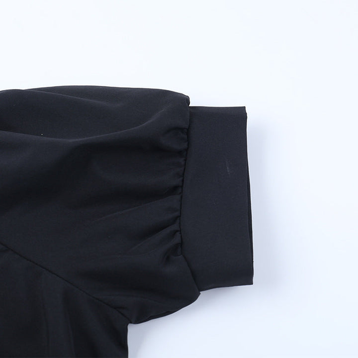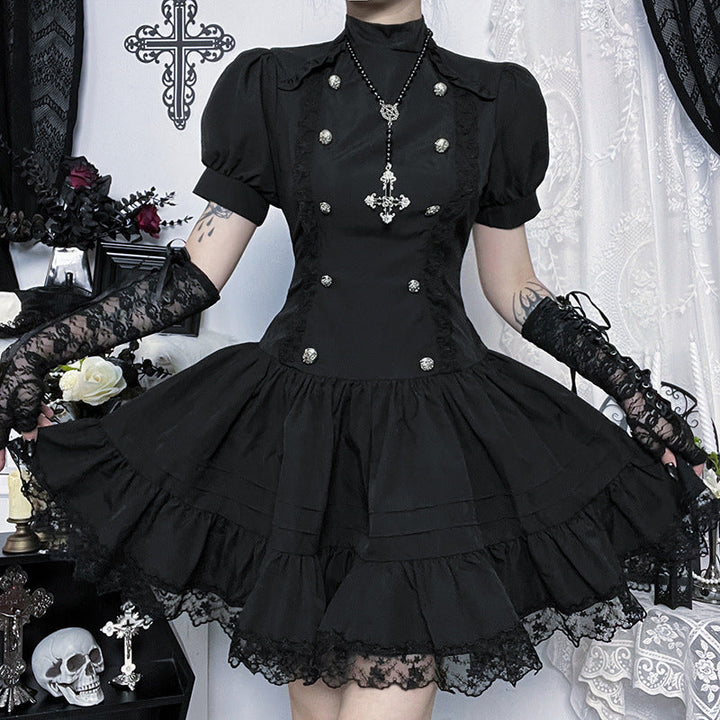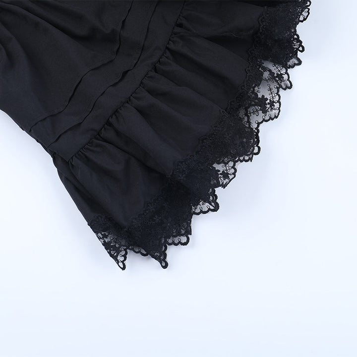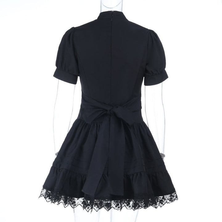 Puff sleeve high neck lace hem mini dress