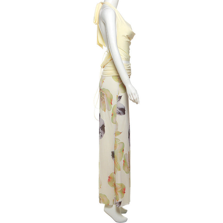 Self tie halter cowl neck flower print maxi skirt set