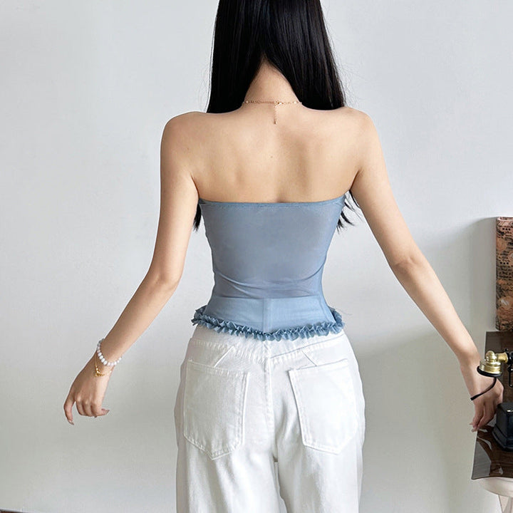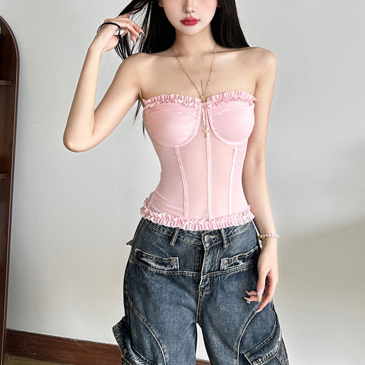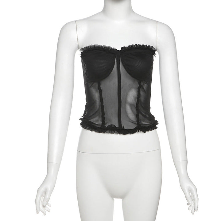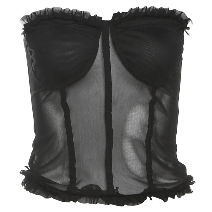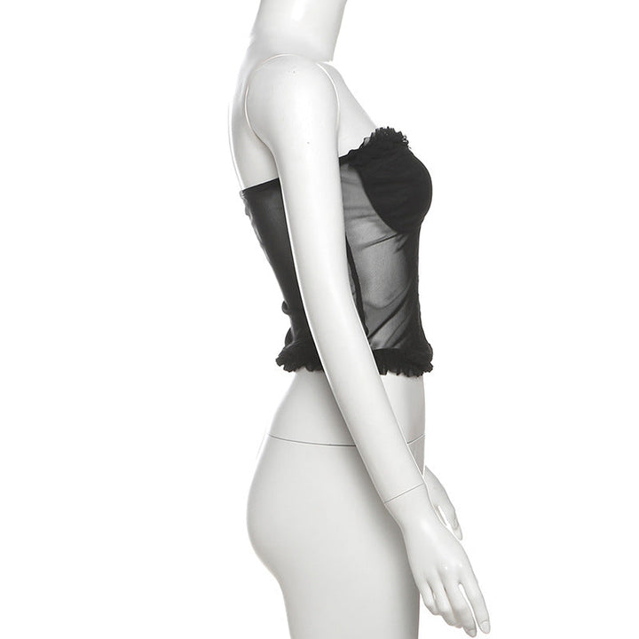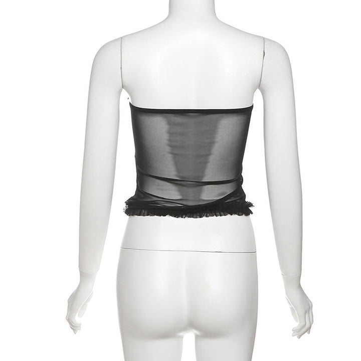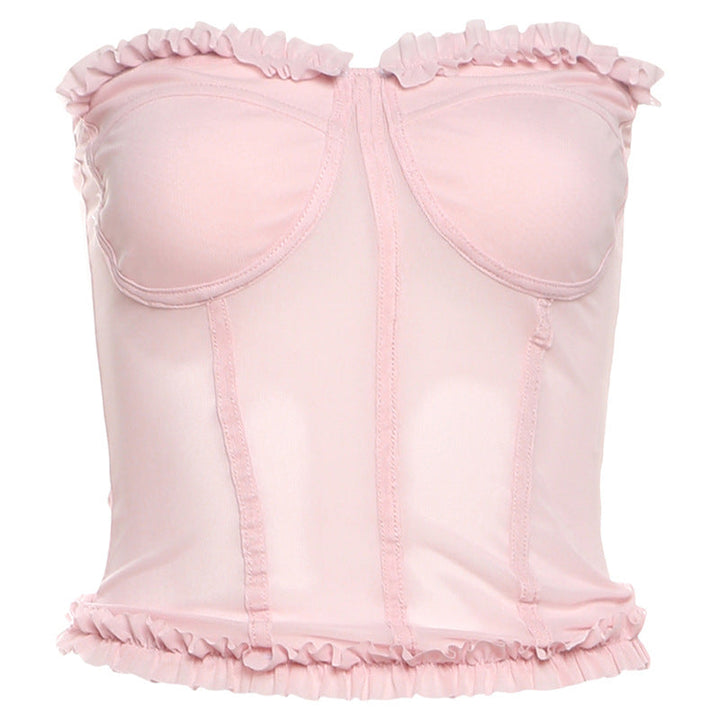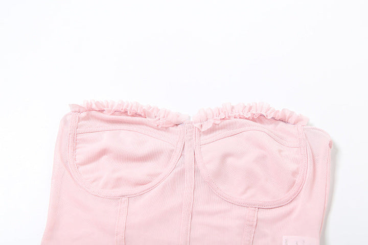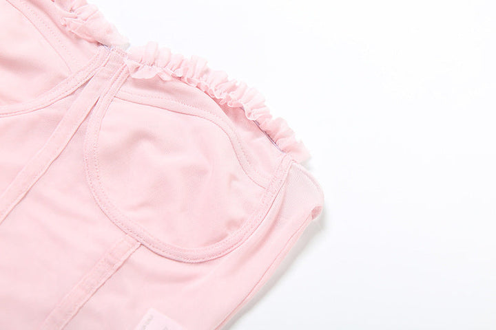 Sweetheart neck ruffle mesh backless top
