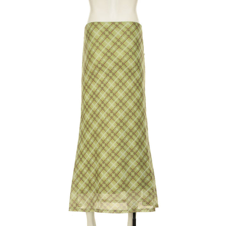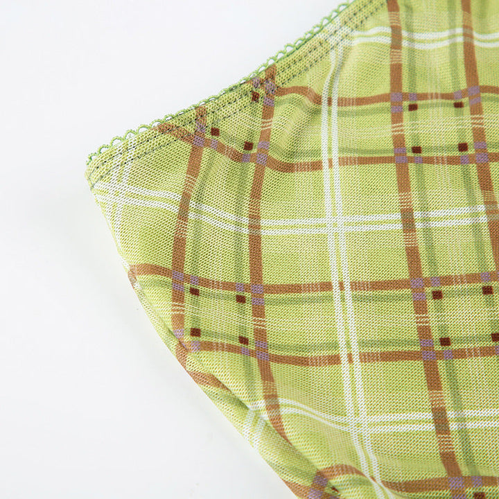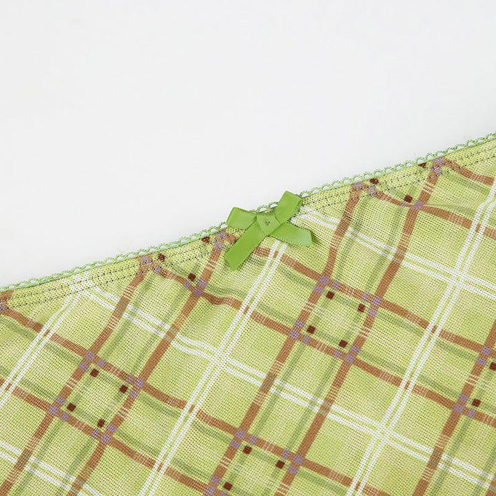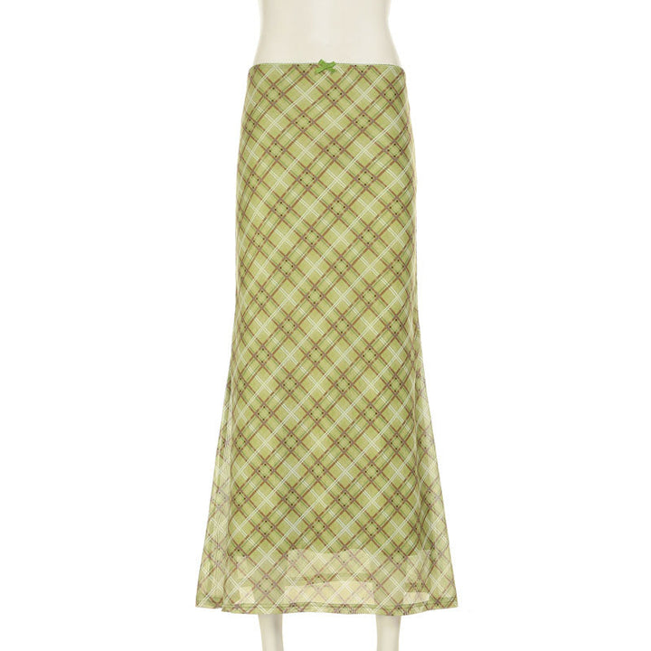 Bowknot plaid mesh contrast midi skirt