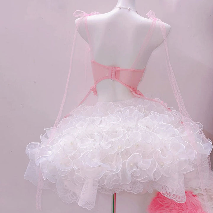 Bowknot self tie lace hem v neck beaded cami top