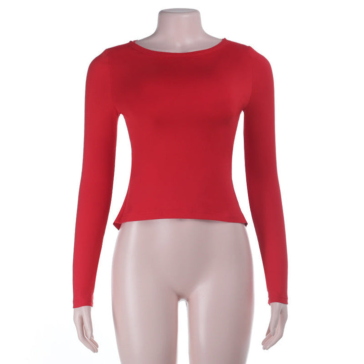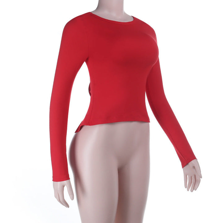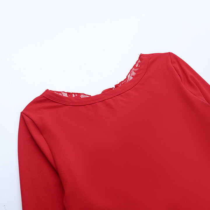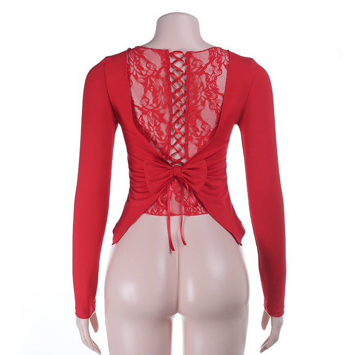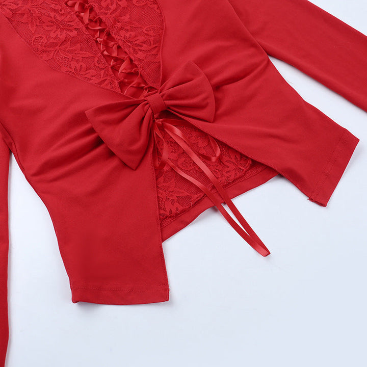 Crewneck long sleeve bowknot lace solid top