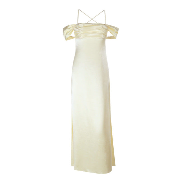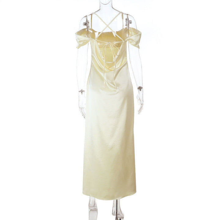 Cross back satin square neck off shoulder maxi dress