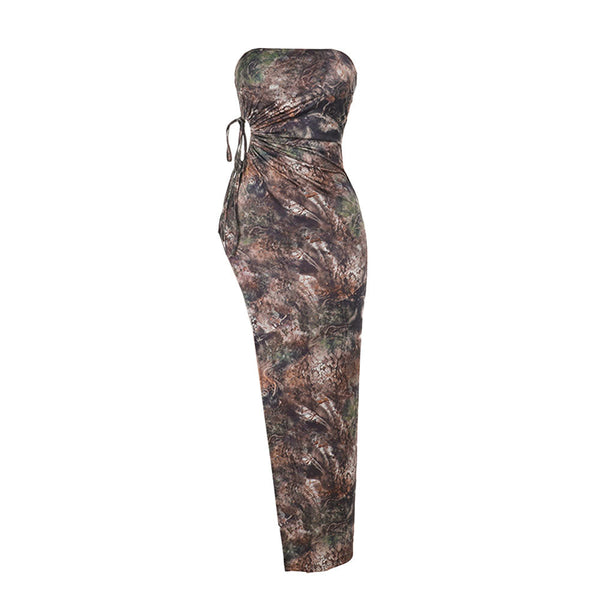 Drawstring camouflage backless contrast tube crop top y2k 90s Revival Techno Fashion