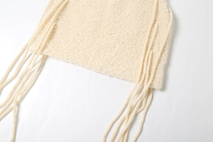 Fluffy tassels knitted solid skirt set