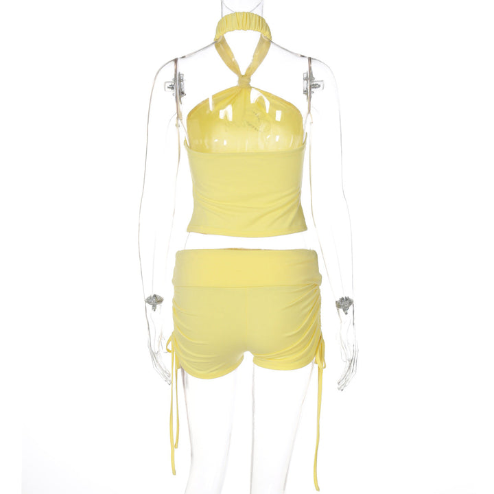 Halter beaded drawstring short pant set