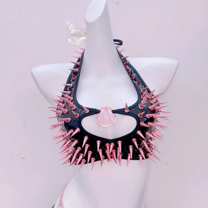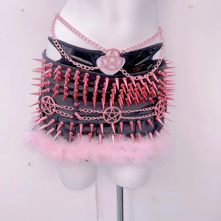 Halter rivet hollow out metal chain mini skirt set
