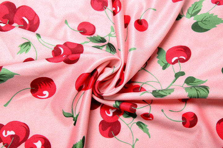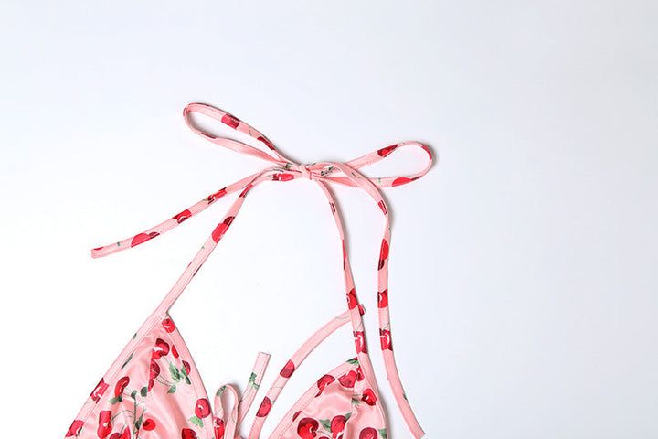 Halter self tie Cherry print v neck bikini swimwear