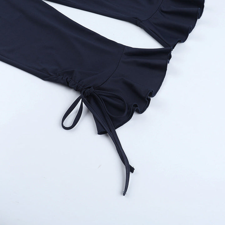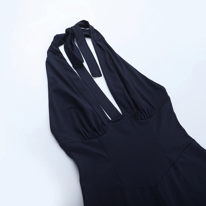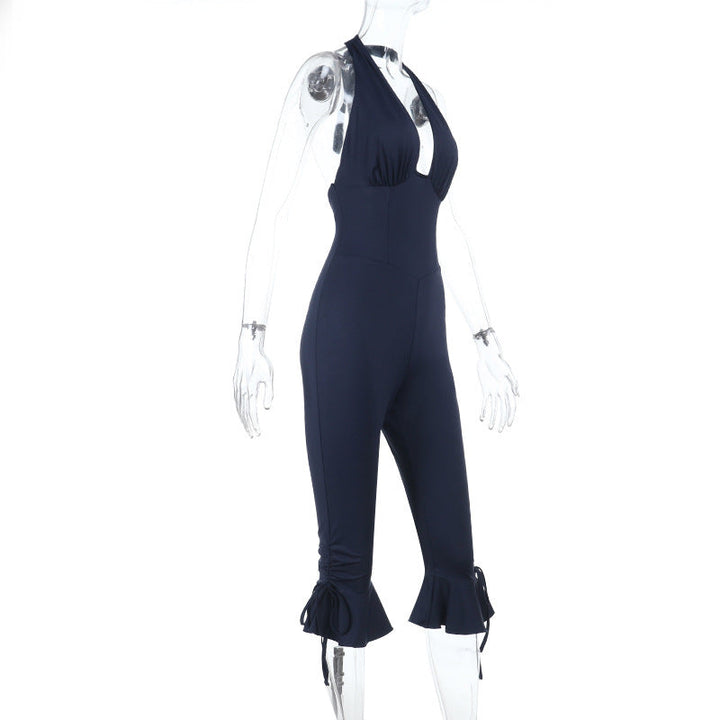 Halter self tie ruffle v neck ruched jumpsuit
