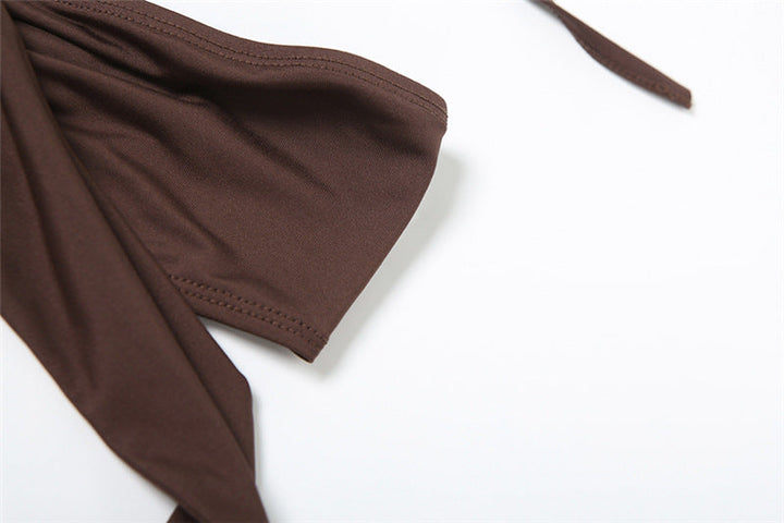 Hollow out halter self tie ruched bodysuit