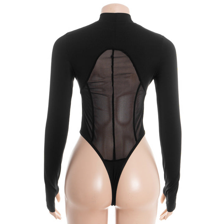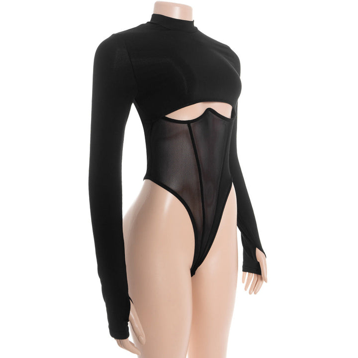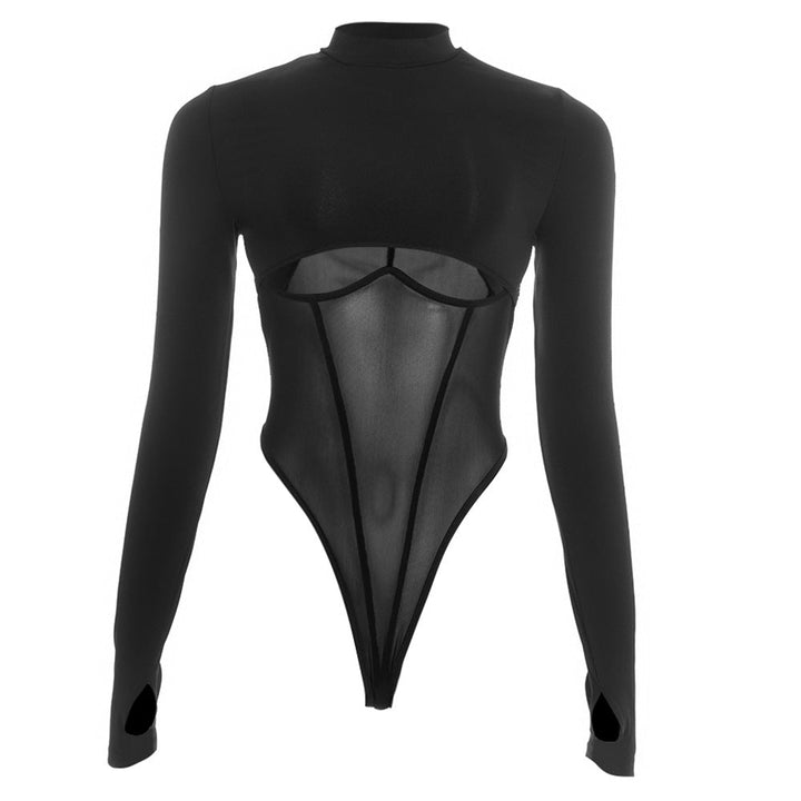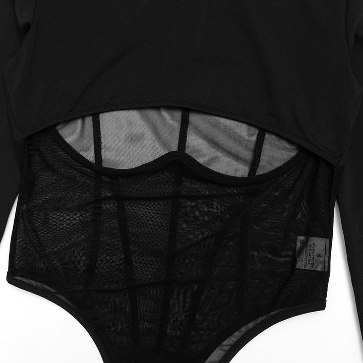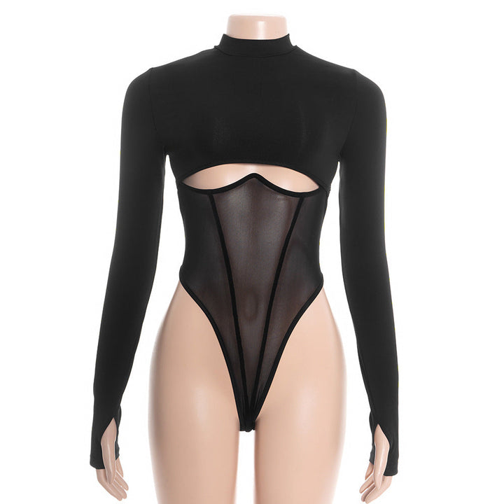 Hollow out long sleeve crewneck mesh bodysuit