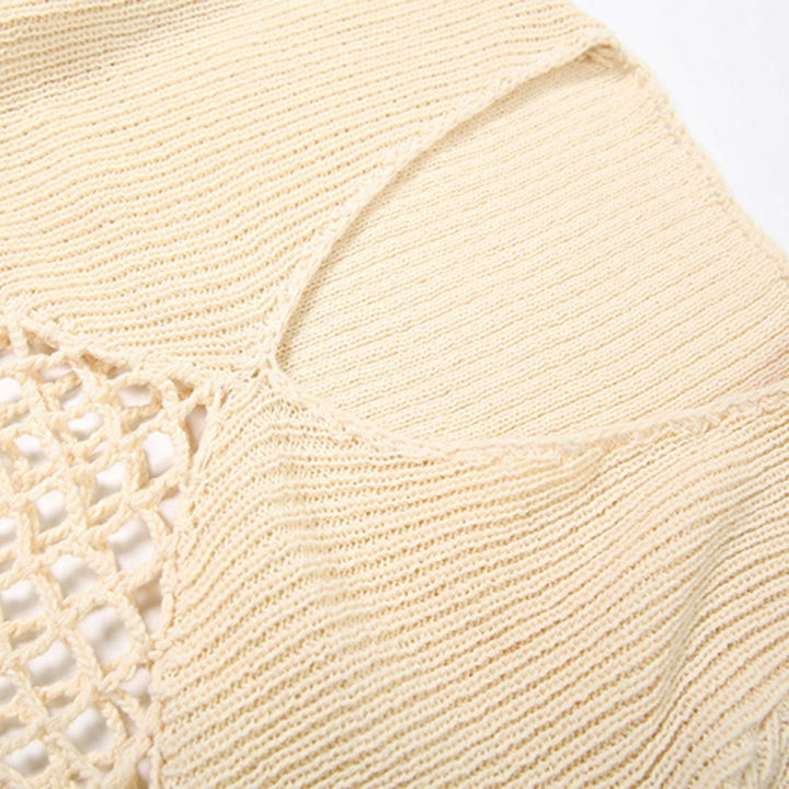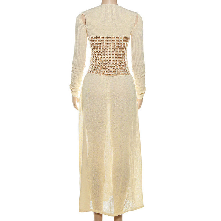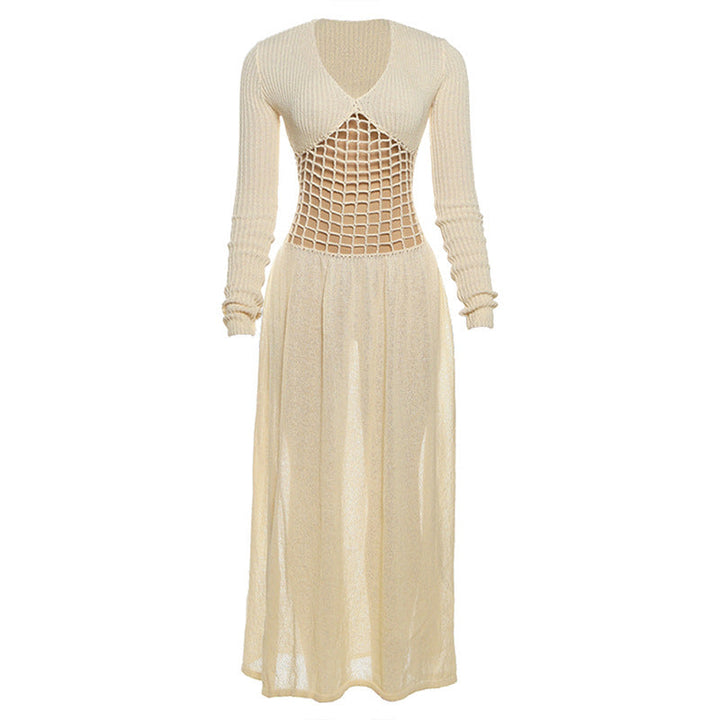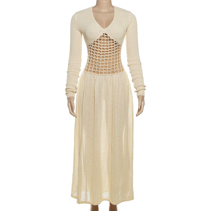 Hollow out v neck long sleeve knitted maxi dress