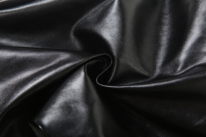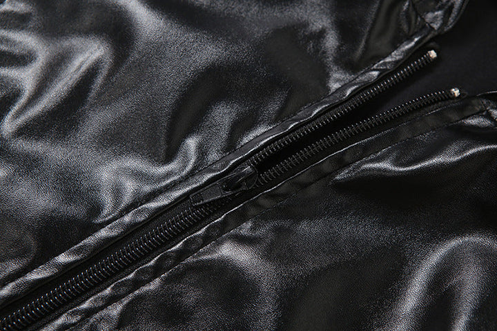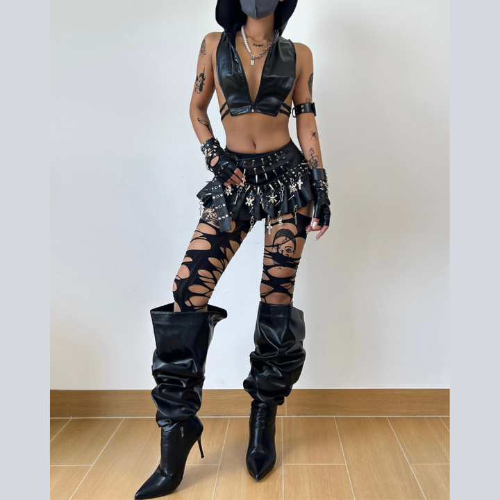 Hoodie zip-up PU leather hollow out top