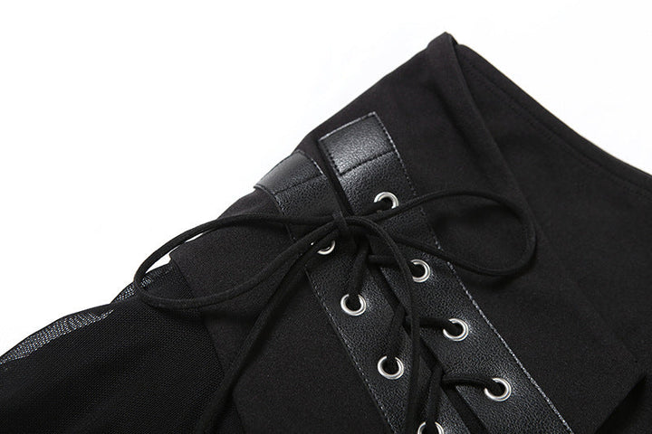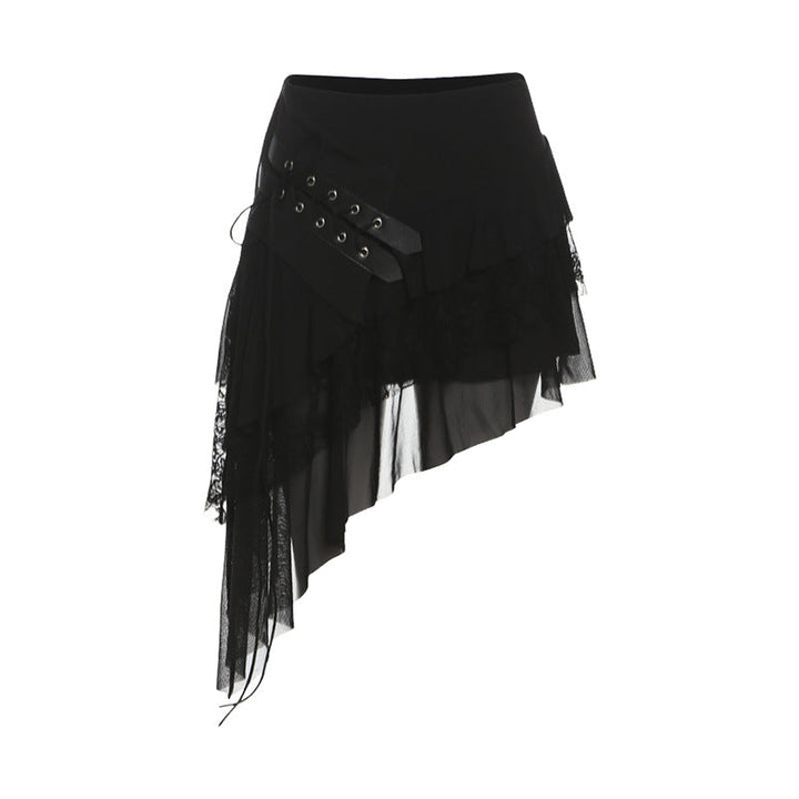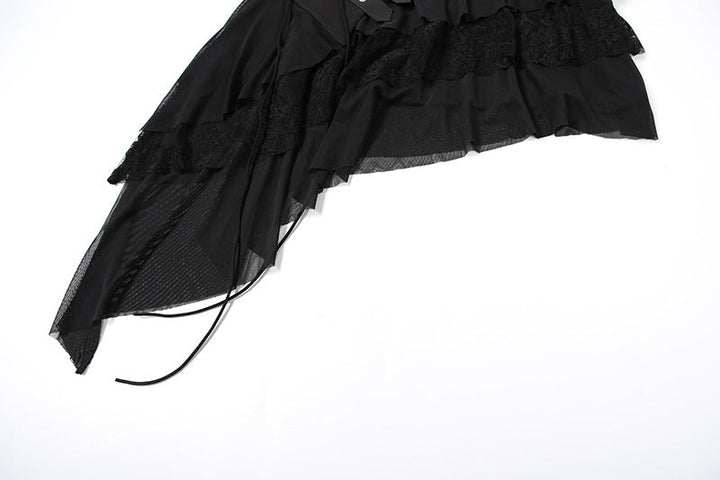 Irregular self tie mesh A line ruffle mini skirt