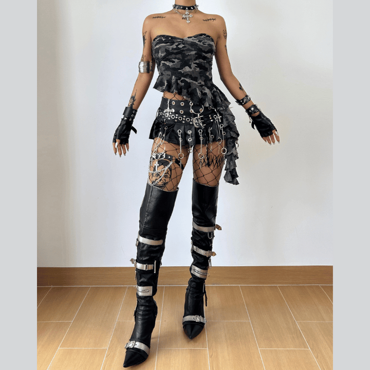 Irregular ruffled sweetheart neck camouflage backless tube top