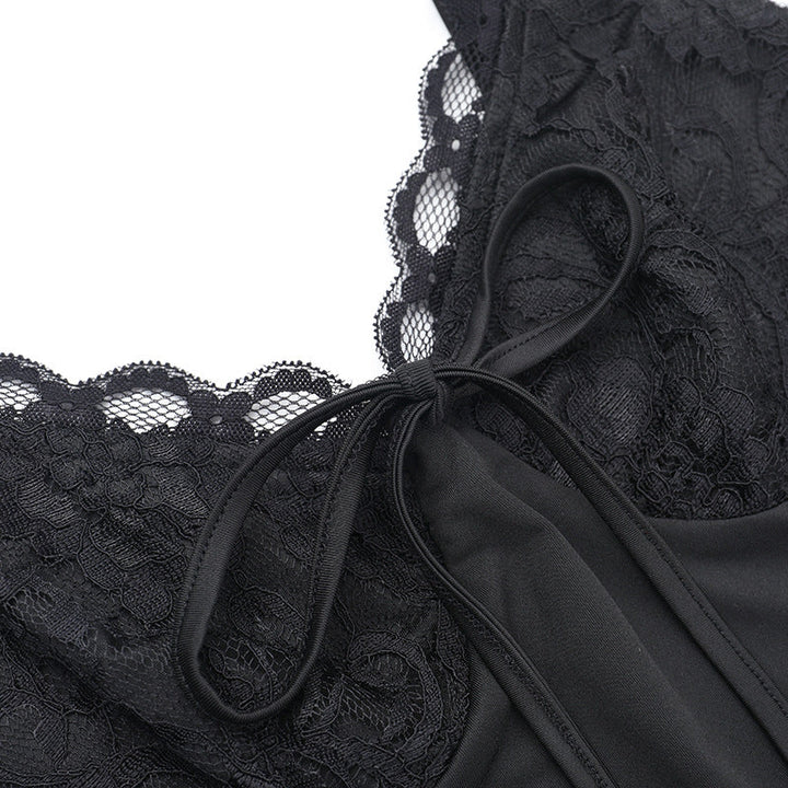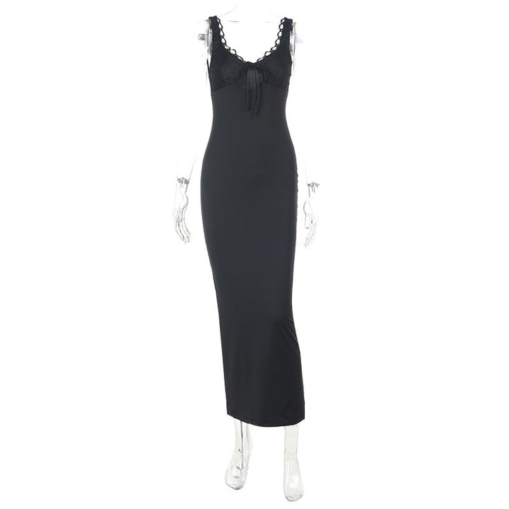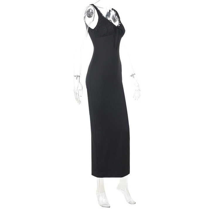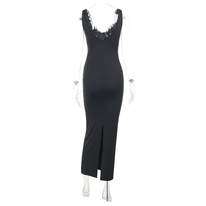 Lace hem v neck slit solid cami maxi dress
