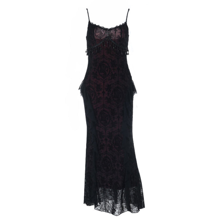 Lace hem v neck tassels print cami maxi dress