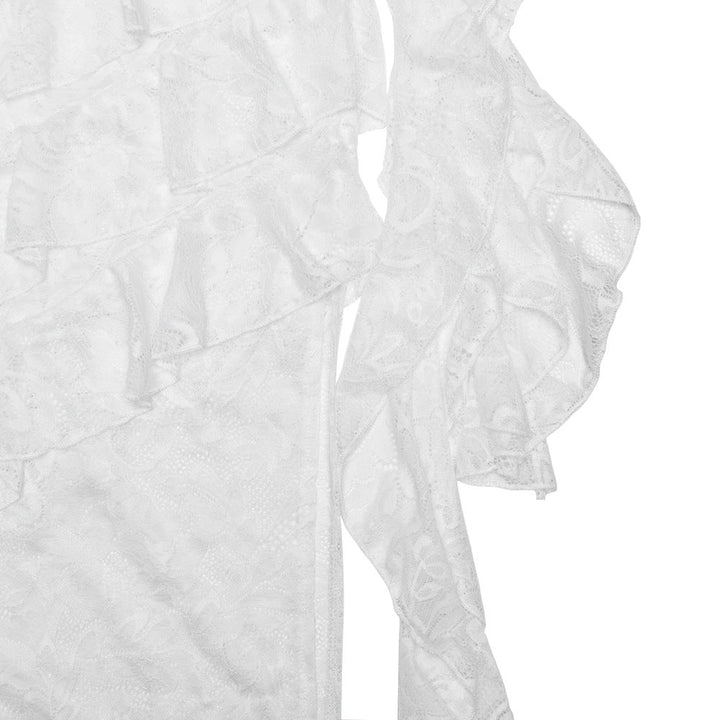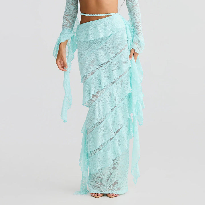 Lace irregular ruffle maxi skirt