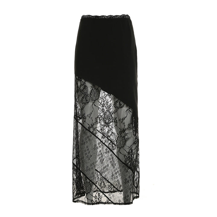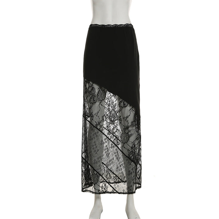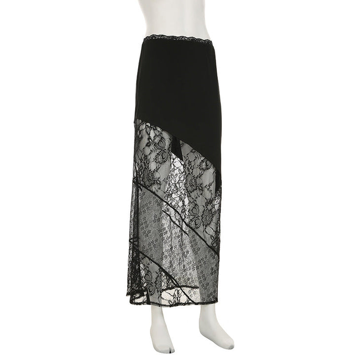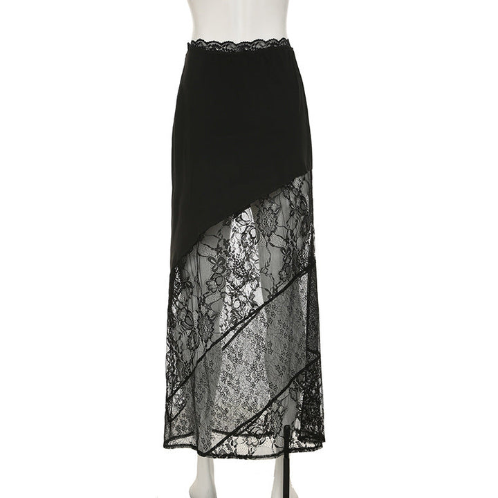Lace patchwork irregular solid mini skirt