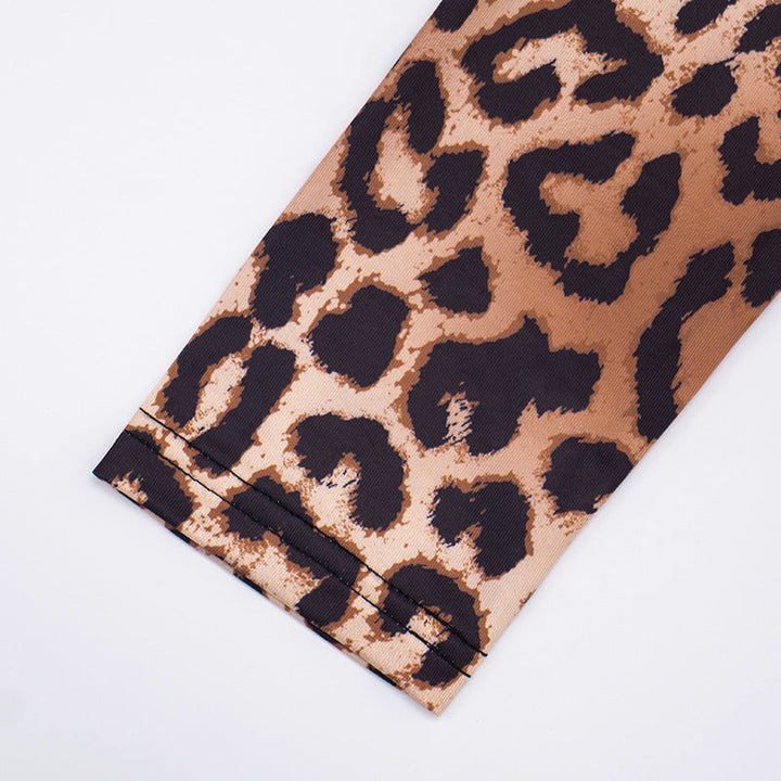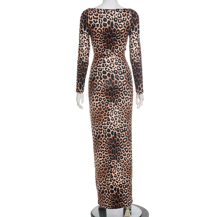 Leopard print hollow out long sleeve maxi dress