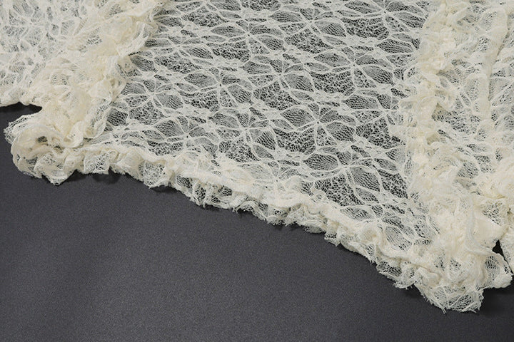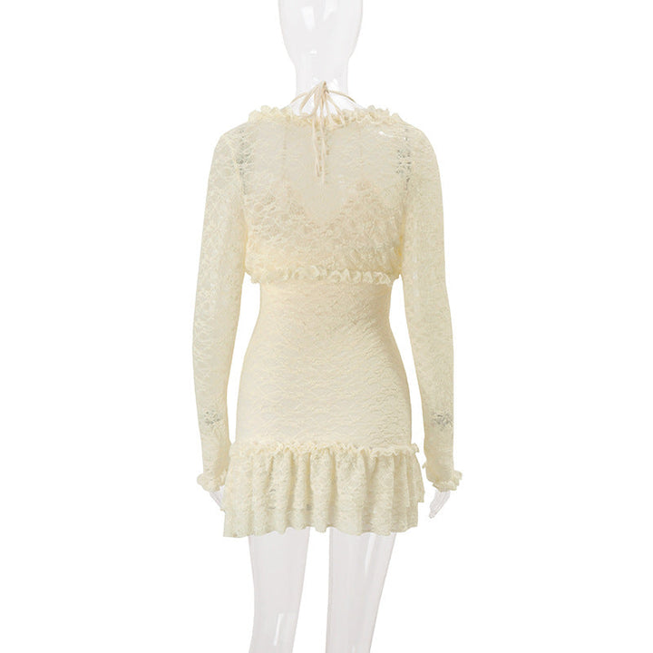 Long sleeve halter ruched lace shrug ruffle mini dress