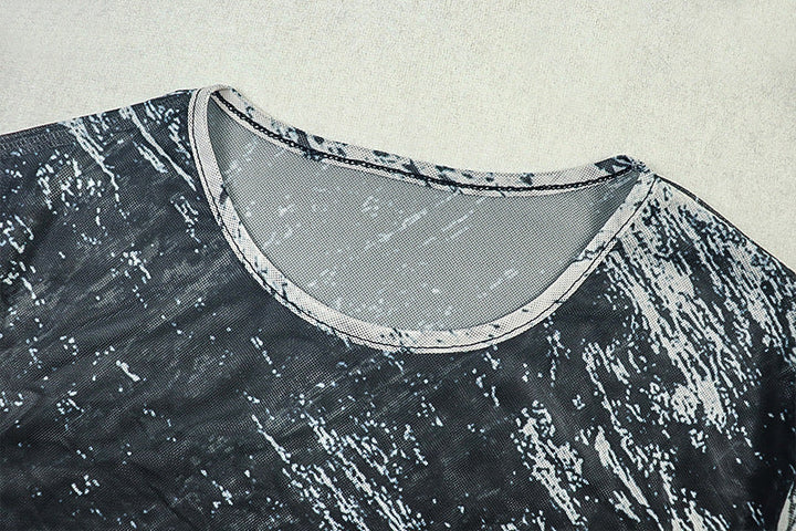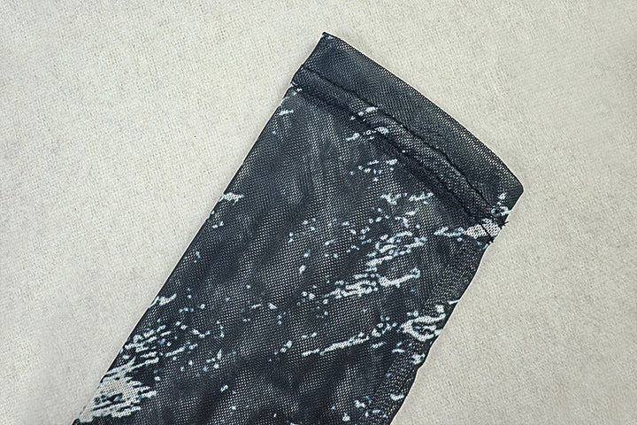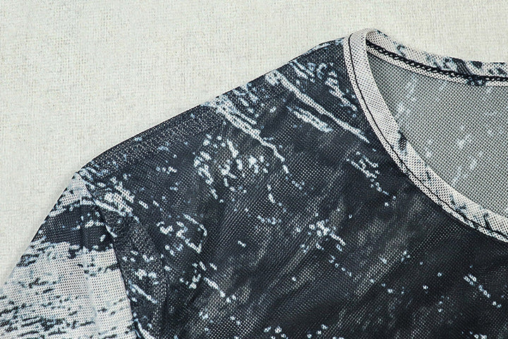 Long sleeve mesh crewneck contrast maxi dress