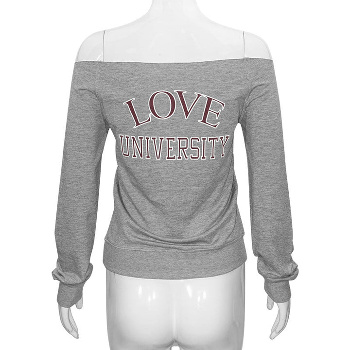 Long sleeve off shoulder letter pattern top