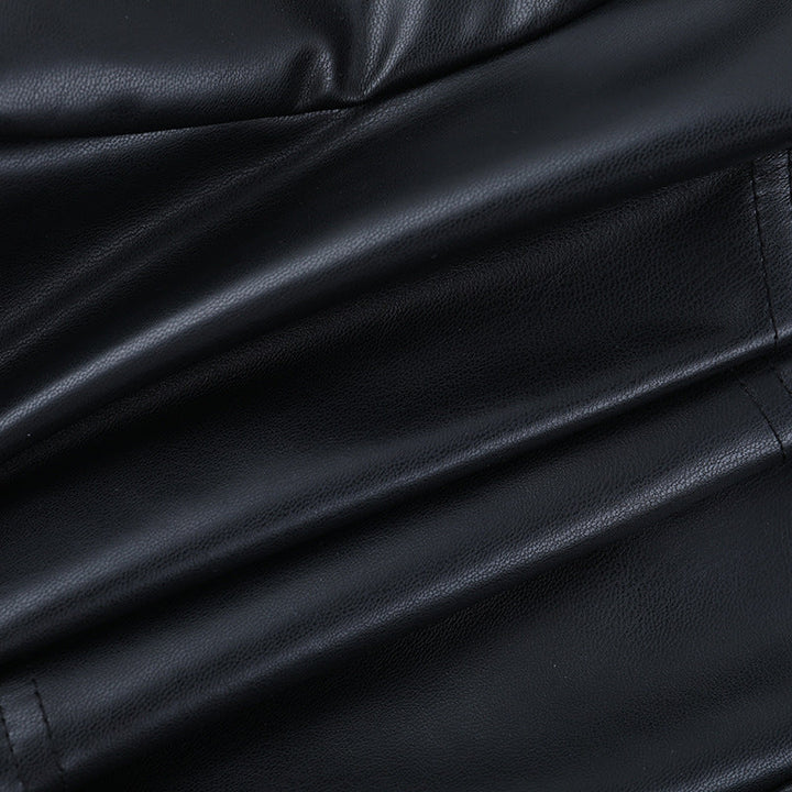 Long sleeve PU leather metal chain shrug top