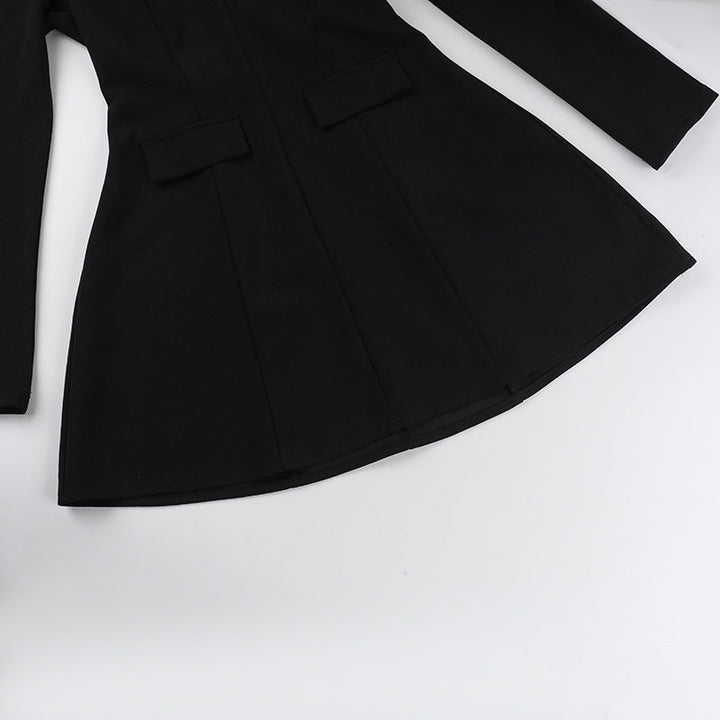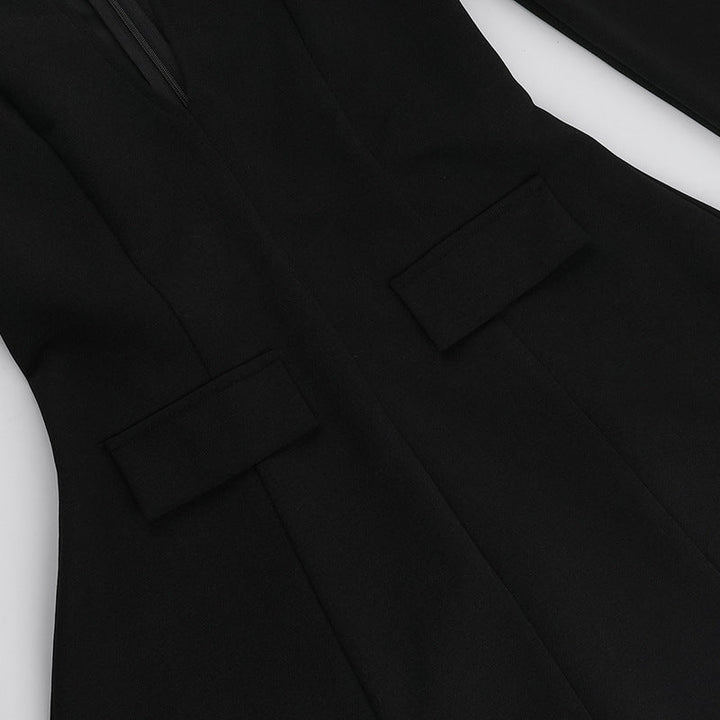Long sleeve v neck zip-up solid mini dress