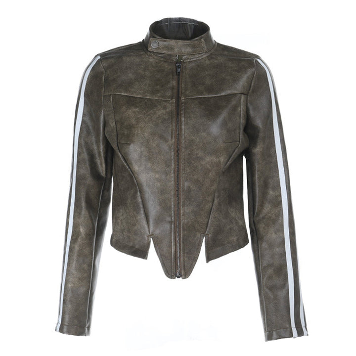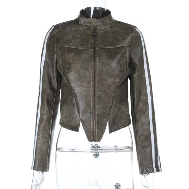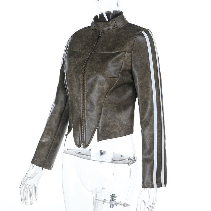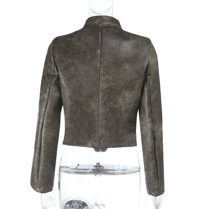 Long sleeve zip-up button high neck top