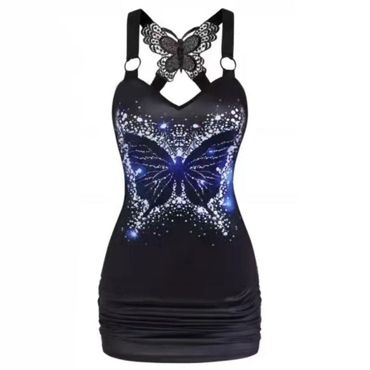 O ring v neck butterfly print cami mini dress