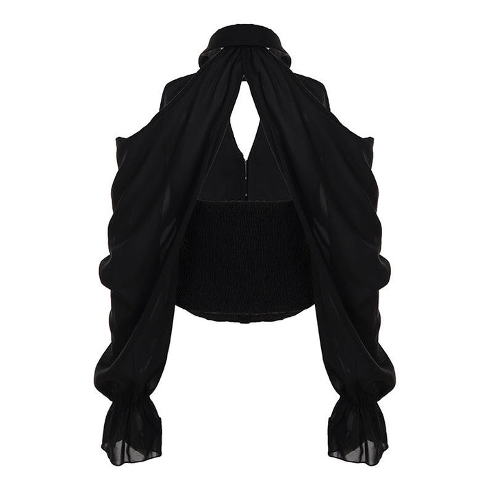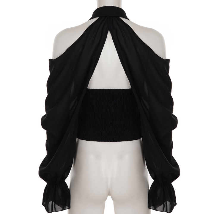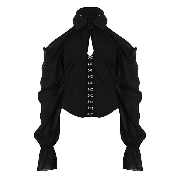 Off shoulder button long sleeve top