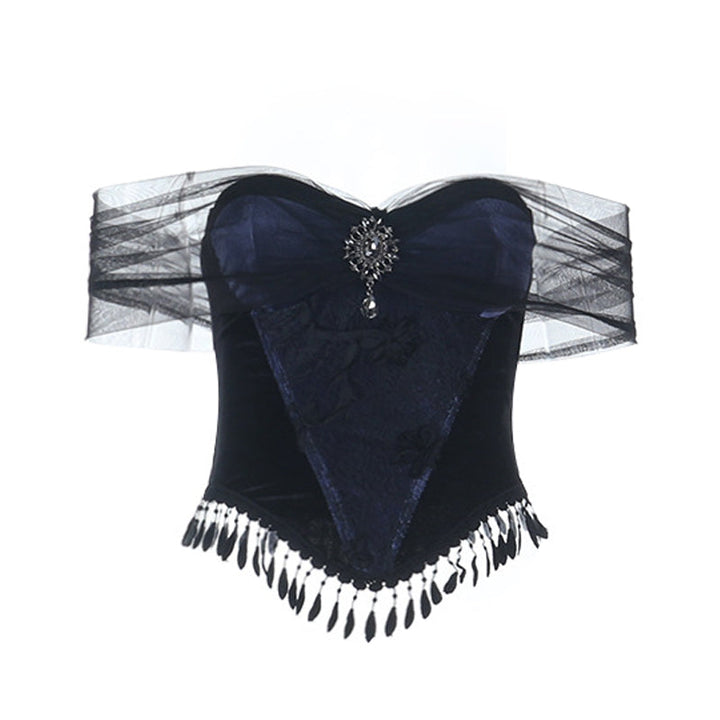Off shoulder mesh backless tube top