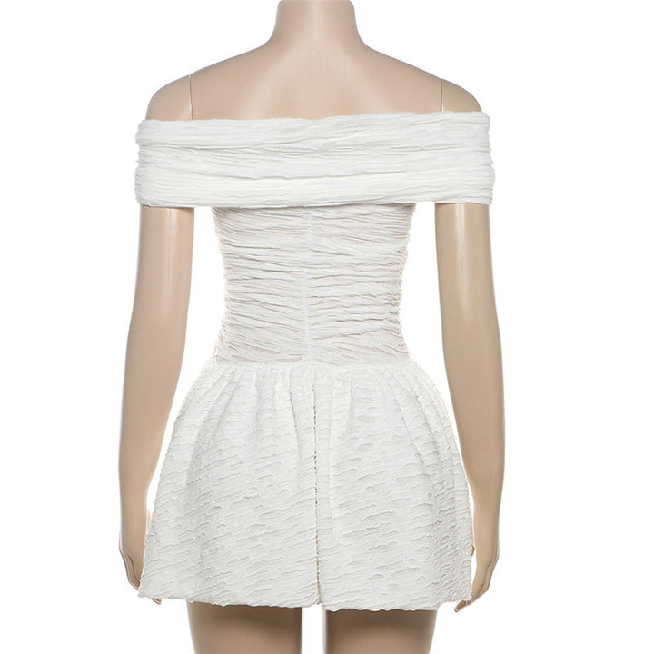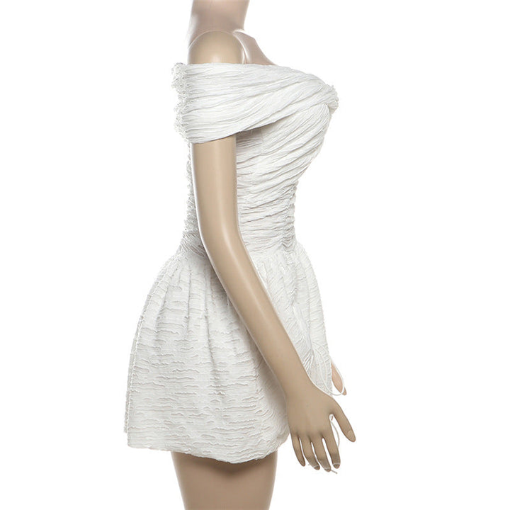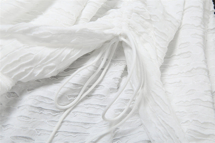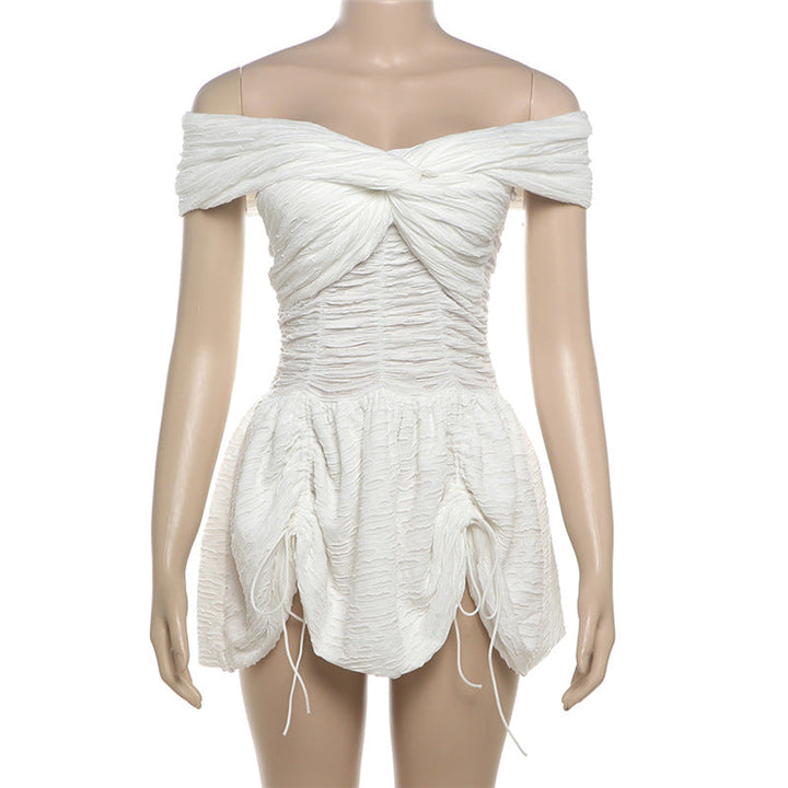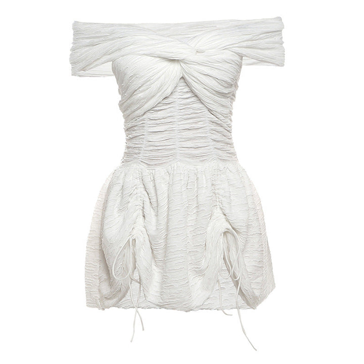Off shoulder ruched drawstring solid mini dress