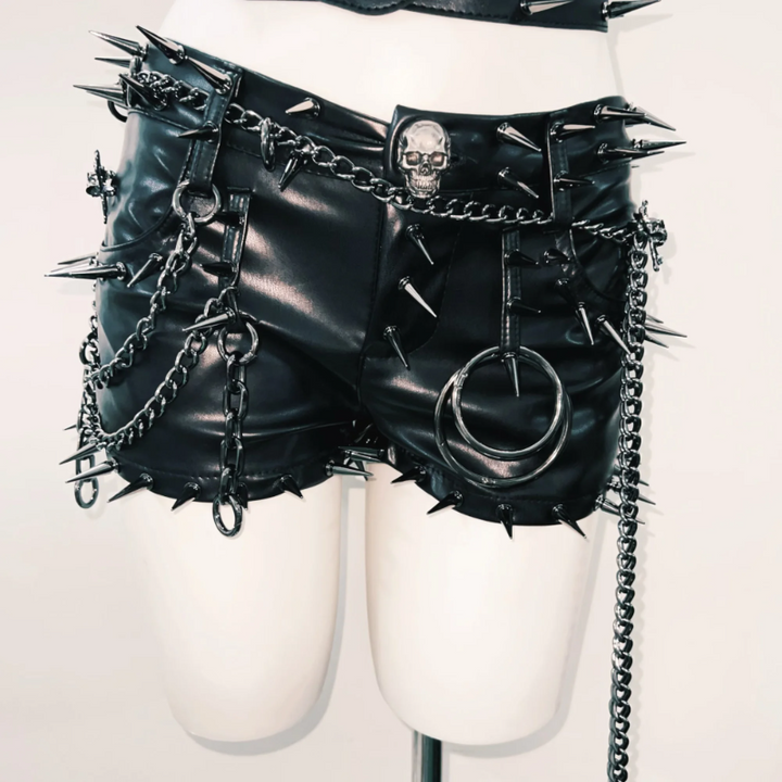 Rivet belt skull applique tube top