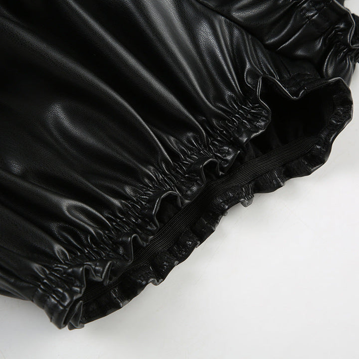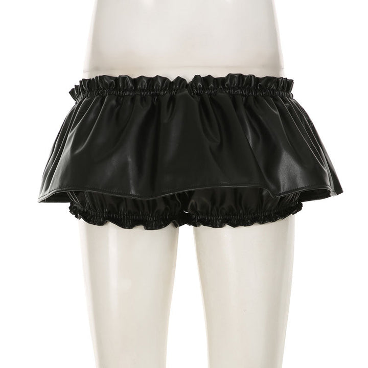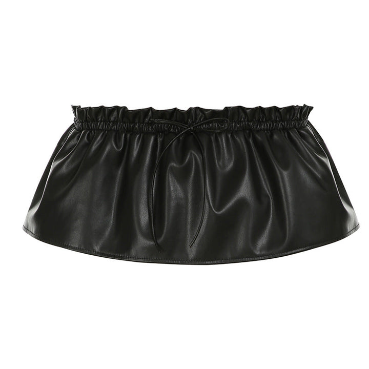 Ruched PU leather ruffle self tie mini skirt