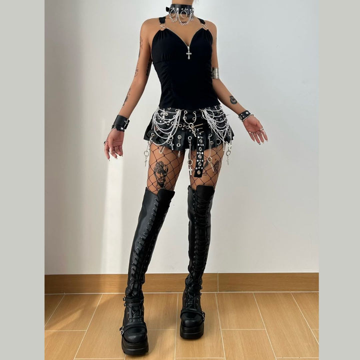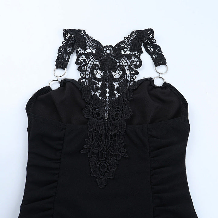 Ruched v neck o ring lace solid top