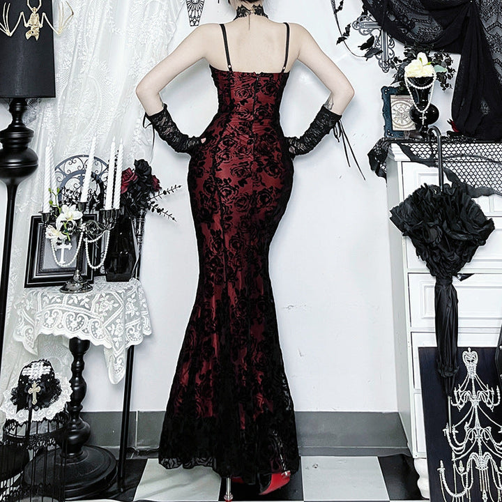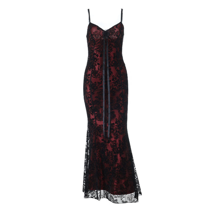 V neck flower applique lace cami maxi dress