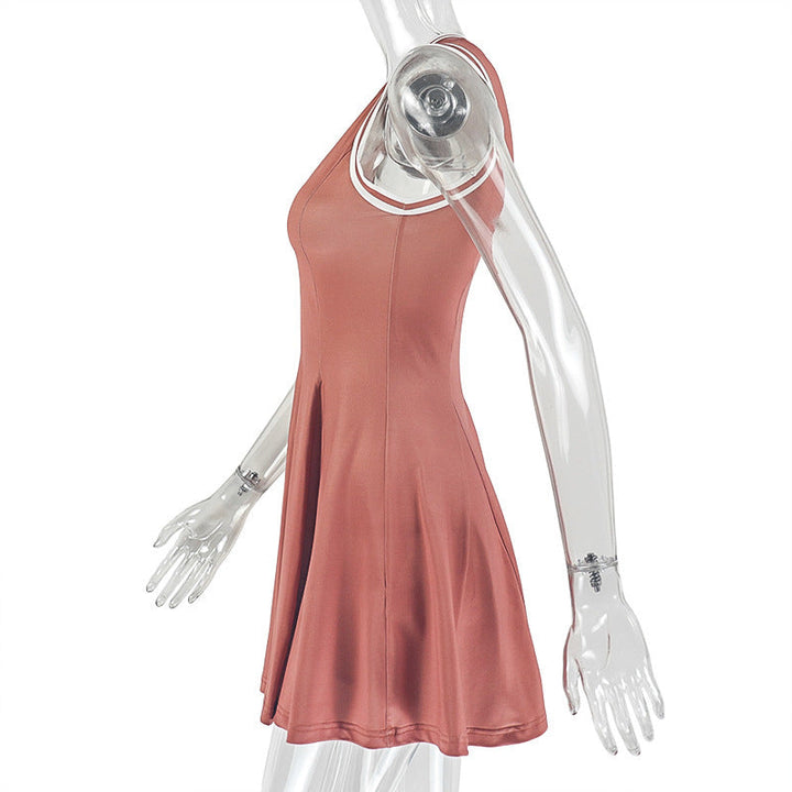 V neck sleeveless contrast mini dress